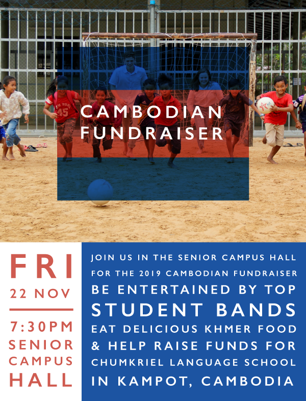 All funds raised on the night will be donated to Chumkriel Language School – Kampot, Cambodia.